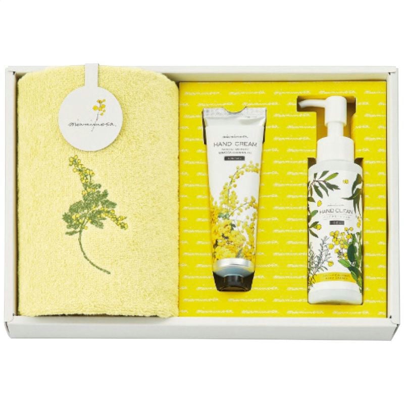 天然香料ミモザ精油がふんわりと柔らかく香る、するすると伸びる滑らかな使い心地のハンドクリームと、保湿成分ヒアルロン酸と、香料(ティーツリー・ユーカリ・ニアウリ・ラヴィンサラ・ミモザ)のアロマ精油を配合した、ほんのりとアロマの香り漂うハンドクリーンジェルと、春を告げる花ミモザをモチーフとした今治タオルのセットです。