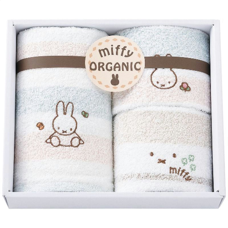シンプルなボーダーにミッフィーの刺繍がアクセントのタオルセットです。