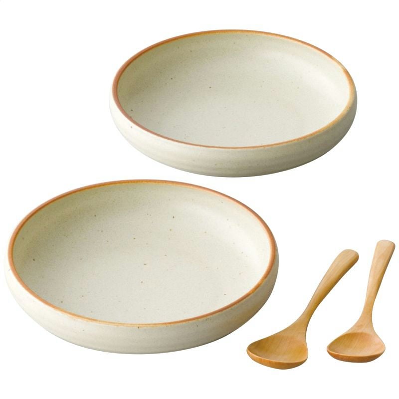現品・内容・サイズ・材質: 直径21cm高さ5cmプレート2枚・磁器・全長18cmスプーン2本・天然木・[日本製]・スプーン[中国製]