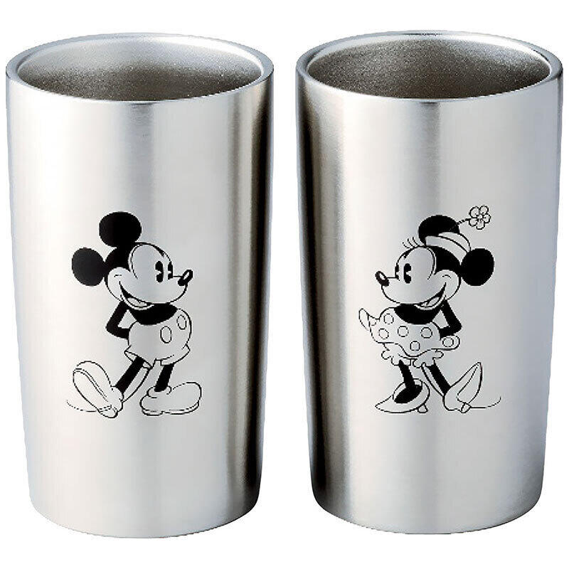高品質な18-8ステンレスを使用したミッキーとミニーが向かい合う可愛いペアの真空ステンレスタンブラーセットです。各タンブラーは表裏2面印刷です。冷たい飲み物、温かい飲み物、どちらでもご使用可能です。
