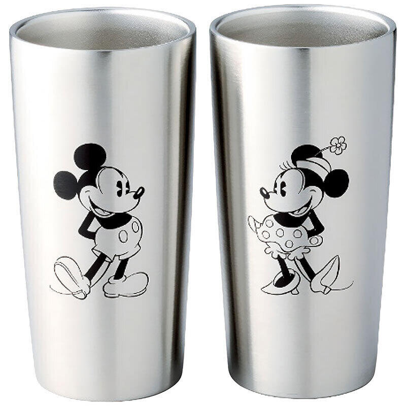 高品質な18-8ステンレスを使用したミッキーとミニーが向かい合う可愛いペアの真空ステンレスタンブラーセットです。各タンブラーは表裏2面印刷です。冷たい飲み物、温かい飲み物、どちらでもご使用可能です。