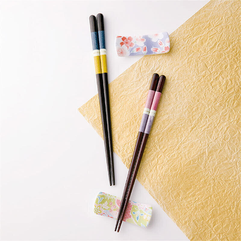 幸せな食卓を思い浮かべながら、お揃いのお箸と雰囲気を合わせた箸置とのセットを一双オリジナルの桐箱に入れました。漆塗りの夫婦箸は、結婚祝いや敬老の日など記念日の贈り物にぴったりです。伝統を感じさせながらも現代の食卓に調和するデザインで、普段使いから来客時まで幅広く活躍します。