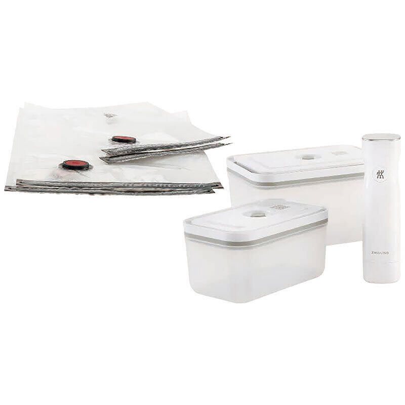 真空にすることで酸化を防ぎ、料理や食材を長く保存できる容器とパックです。