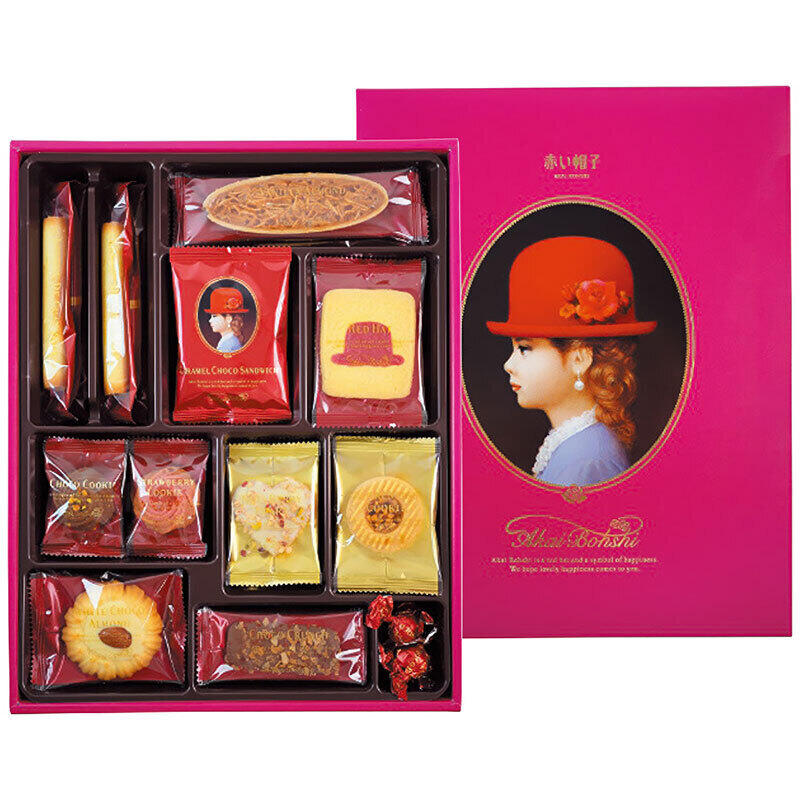赤い帽子の女の子でおなじみ、ギフトで定番のピンク缶クッキーアソートです。