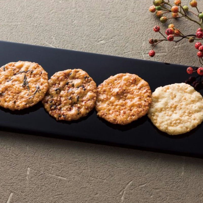 えび・のり・黒こしょう・ごまの、4つの味わいが程よく絡み、ついもう一枚手が伸びるおいしさです。