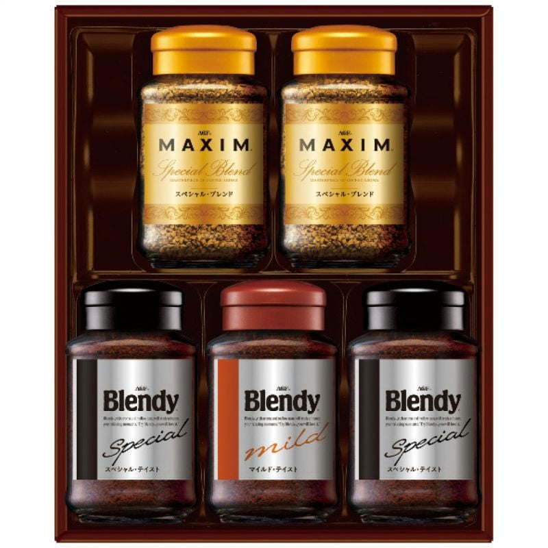 現品・内容・サイズ・材質: マキシムスペシャルブレンド65g×2瓶・ブレンディ70g(スペシャルテイスト2瓶・マイルドテイスト1瓶)