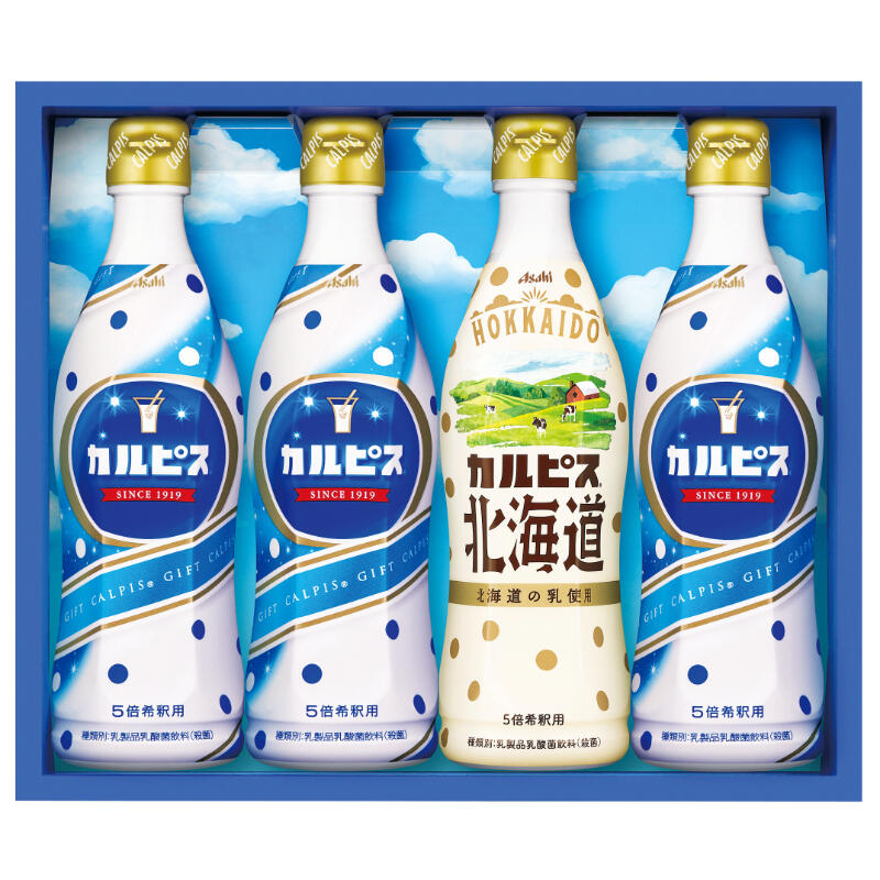 生乳と乳酸菌がつくりだしたさわやかな味わい。おなじみの「カルピス」に北海道産生乳を使用ギフト限定の「カルピス北海道」をアソートしたギフトセットです。