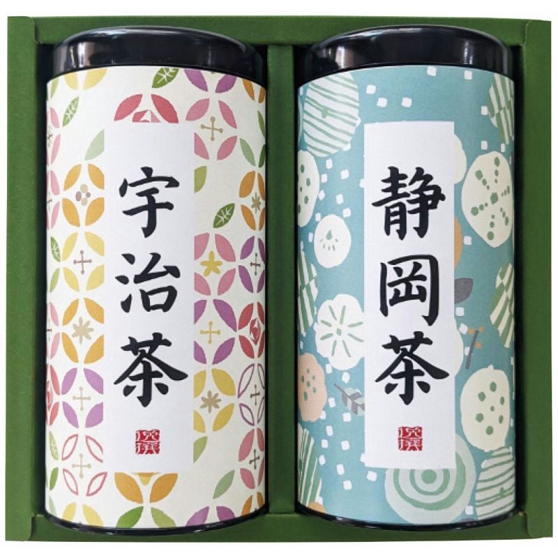 和をイメージしたデザインの缶で幅広い世代に人気があります。宇治茶は爽やかな味わいでとても飲みやすい煎茶、静岡茶は濃い味で甘味もある深蒸し茶となります。