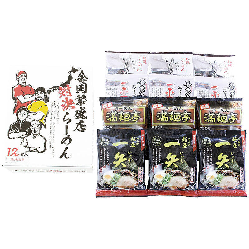 現品・内容・サイズ・材質: ラーメン(札幌いちまる味噌味・喜多方一平醤油味・広島満麺亭担々麺・博多一矢とんこつ味)各3食