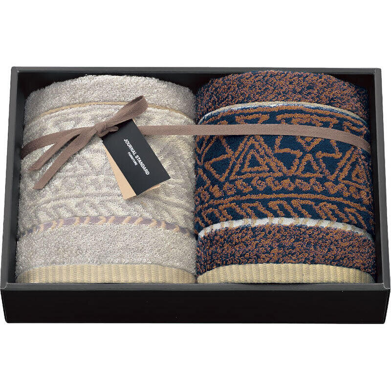 カジュアル好きな大人にプレゼントしたい、ブラウン・グレーとネイビーを基調にしたタオルセットです。