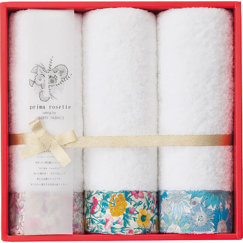小花柄が美しいリバティ・ファブリックスとのコラボレーションによって誕生した、タオルブランド「プリマロゼッタ」のフェイスタオルセットです。