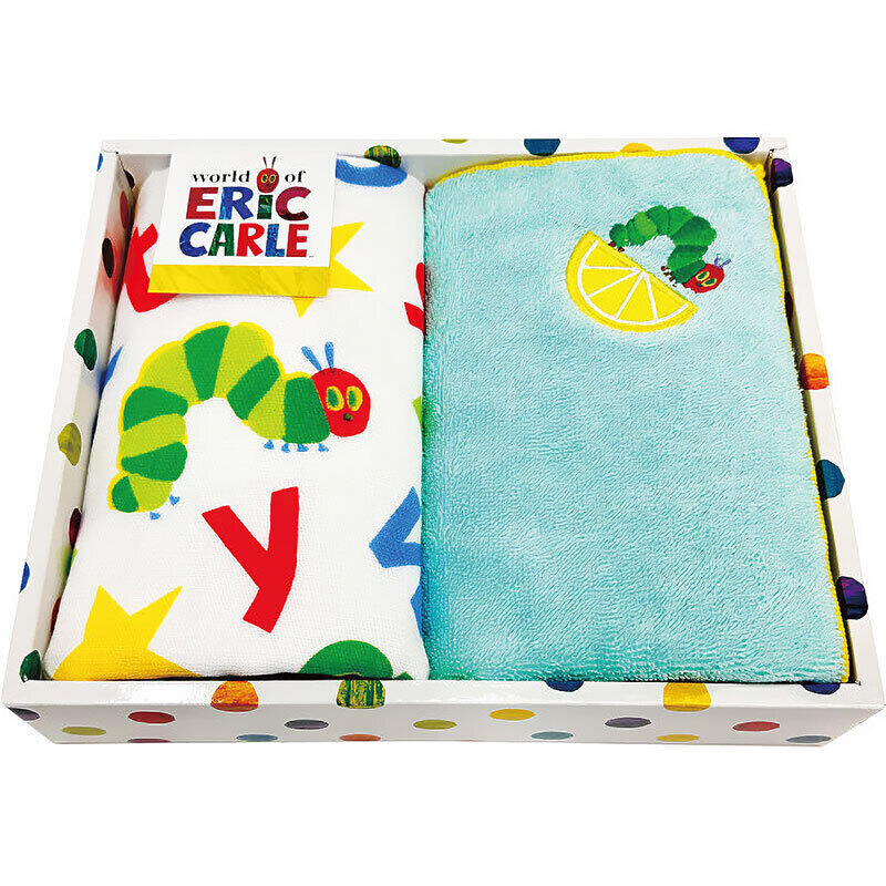 大胆な色使いで大人から子供まで幅広く愛されている絵本「はらぺこあおむし」の、鮮やかな色使いのタオルセットです。