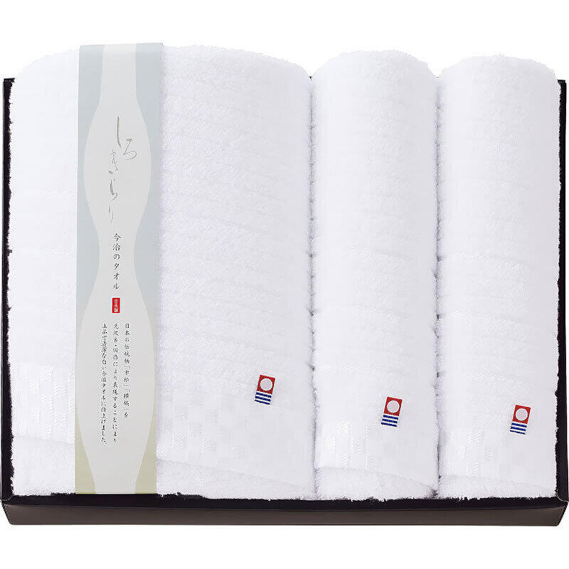 日本の伝統柄『市松』と『横縞』を、光沢糸とジャカード織りの凹凸により美しく表現しました。上品で清潔感あふれるまっ白な今治タオルに仕上げています。