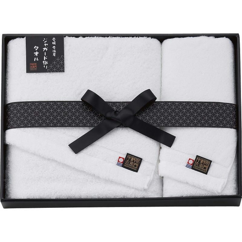 高級感のあるジャガード織の白いタオルです。