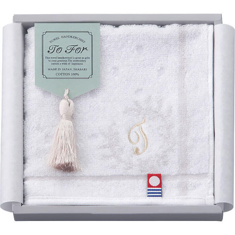 上品な光沢のイニシャル刺繍がポイントに入った今治産タオルハンカチ。
