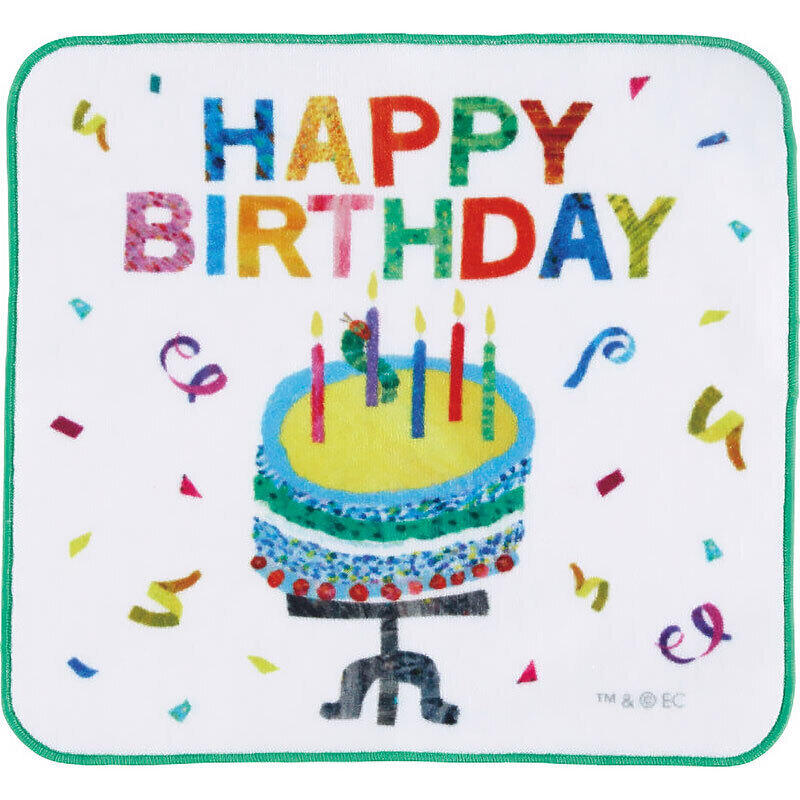 はらぺこあおむしのタオルハンカチ。はらぺこあおむしの世界を誕生日のお祝いに花をそえる商品です