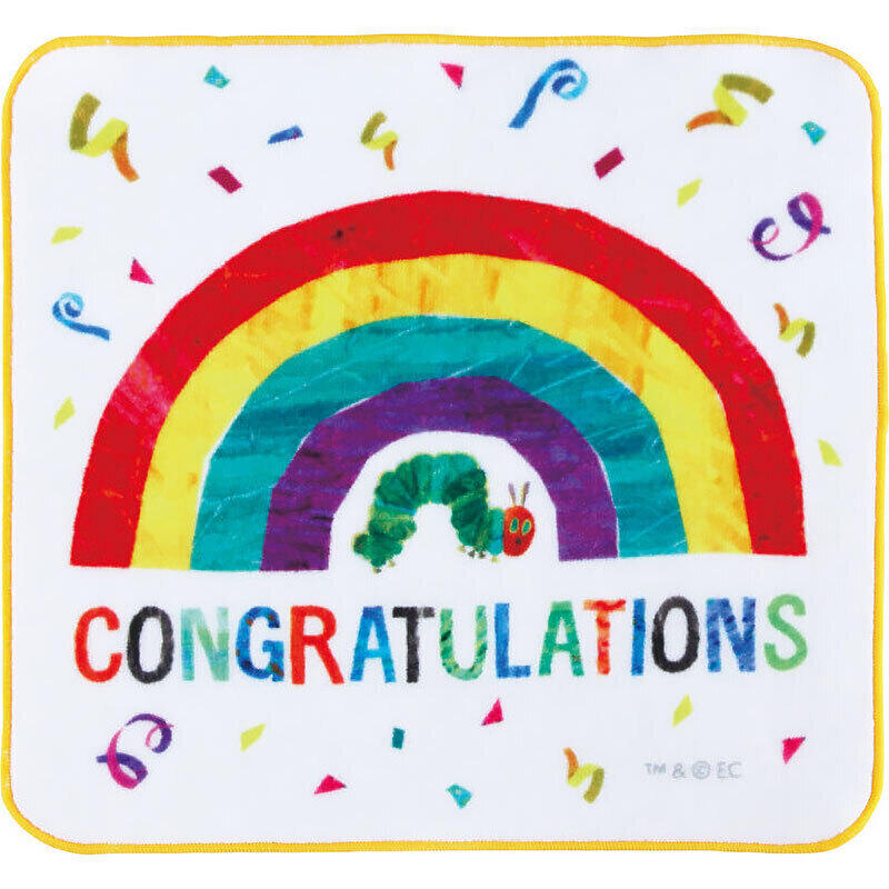 はらぺこあおむしのタオルハンカチ。はらぺこあおむしの世界を楽しめるお祝いに花をそえる商品です