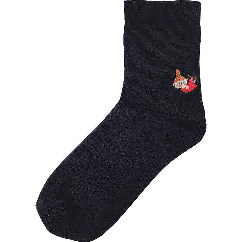 ミイの刺繍が入ったロークルー丈のソックス。履き口ゴムはゆったりタイプ。