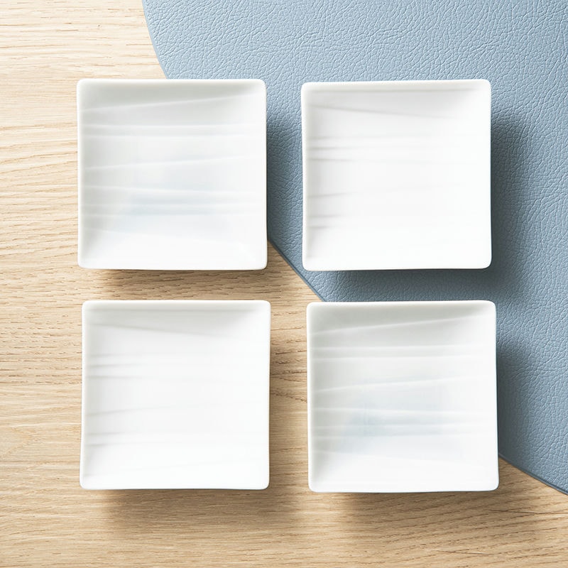 清らかな白が美しい、美濃焼の四角い小皿の4枚セット。