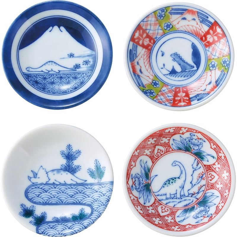 江戸時代に全盛を迎えた古伊万里に恐竜が溶け込んでいます。ブック式の化粧箱もプレゼントやお土産に最適です。