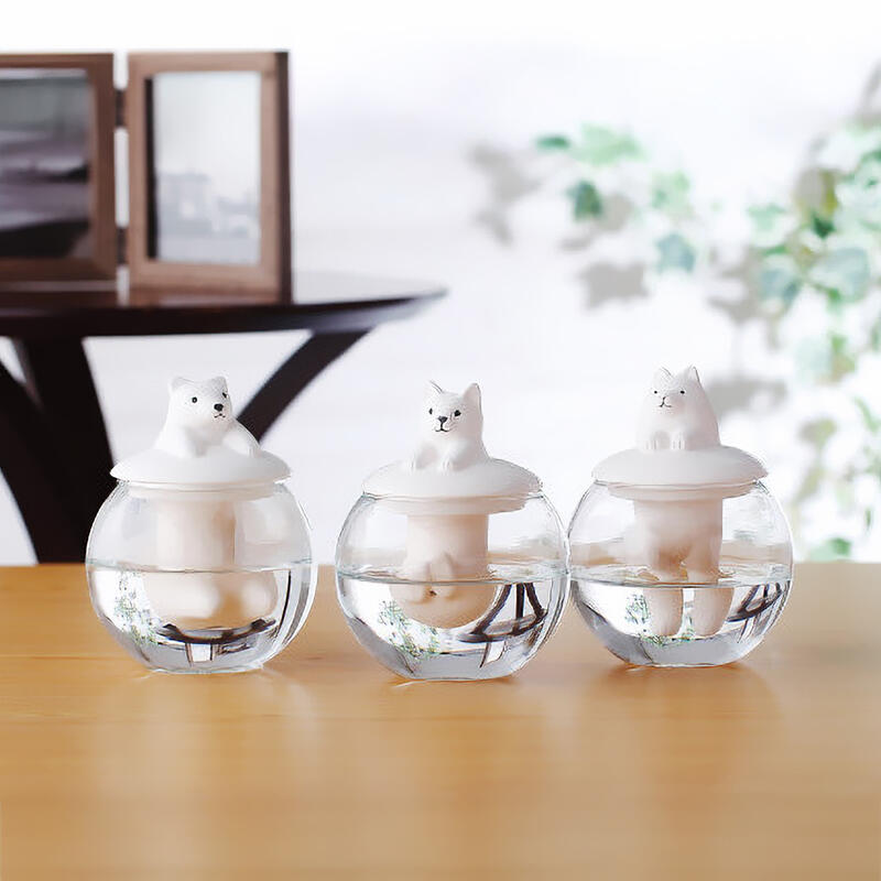 容器に水を入れると動物がぷかぷかと浸っているように見えるドーム型加湿器です。