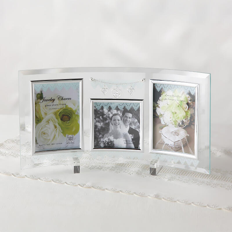 ■クリアのガラスにハート型のチャームが付き。ガラス面にシルバーカラーのレースをプリント。ブライダルにはもちろん、女性に人気のシリーズです。