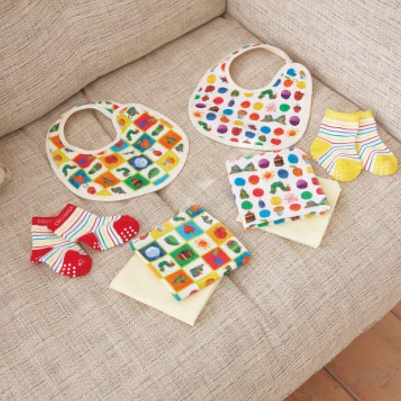 人気絵本のはらぺこあおむしとのコラボシリーズ。何枚あっても助かるスタイとガーゼハンカチ2枚が入ったギフトセットです。