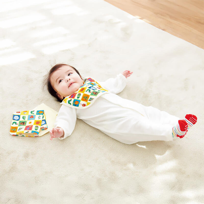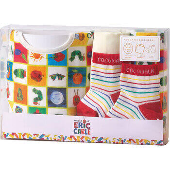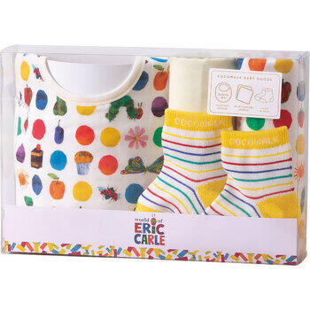 人気絵本「はらぺこあおむし」の、スタイ・ガーゼハンカチ・ソックスのセットです。