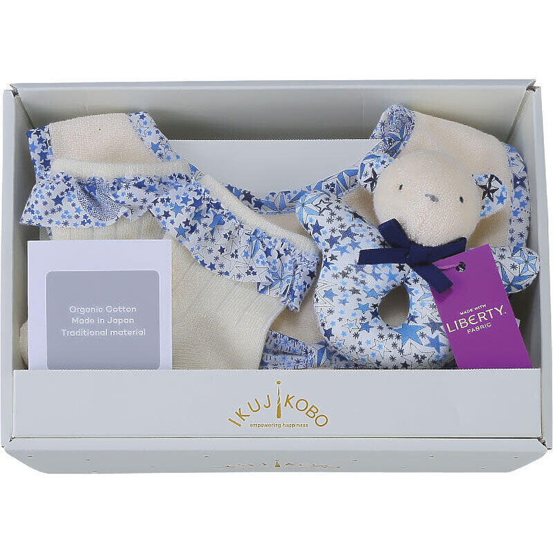人気のリバティプリントを使用したスタイ・ラトル・ソックスのギフトセット。