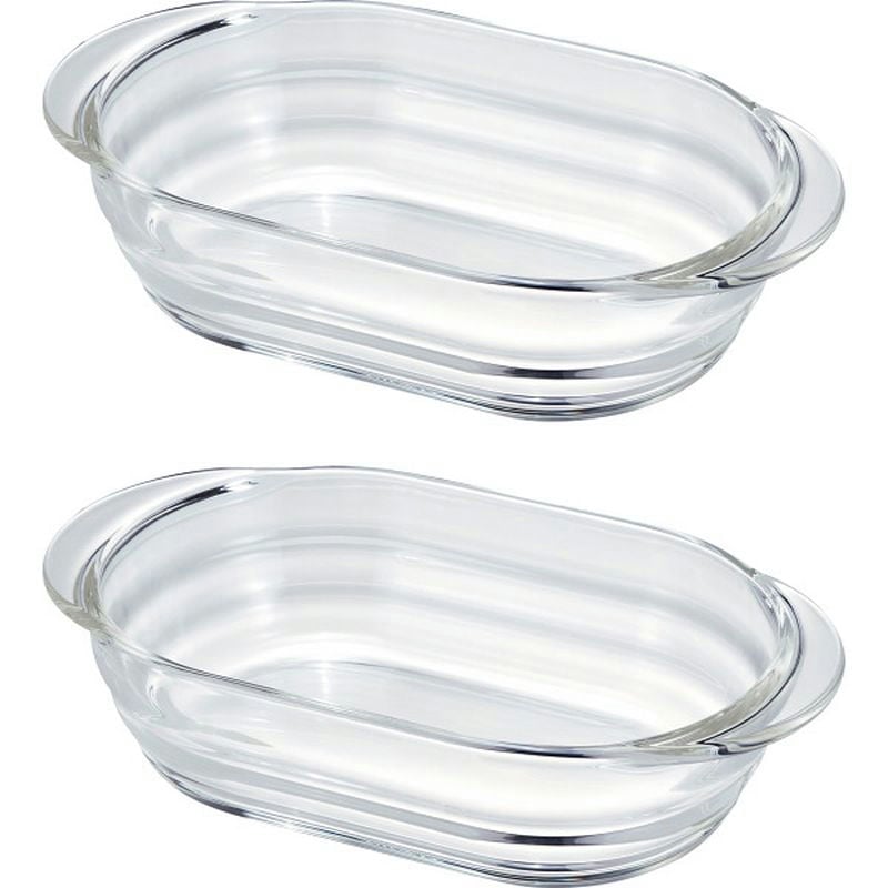 耐熱ガラス製なのでオーブン調理・レンジ調理可能、食器としても使えるデザインです。