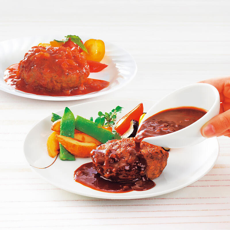 ハンバーグ(牛肉・豚肉使用)130g×8、トマトイタリアンソース40g・洋風デミグラスソース40g×各4