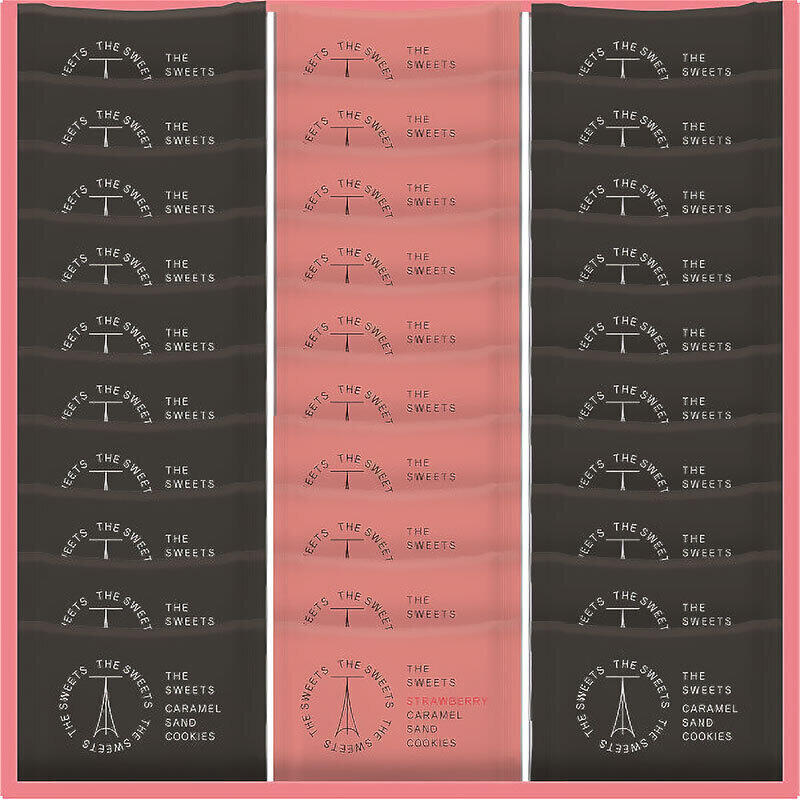 あまおう苺のフリーズドライを混ぜた濃厚なラングドシャ生地でキャラメルとチョコレートをサンドした苺キャラメルサンドとオリジナルフレーバーをセットにしました。