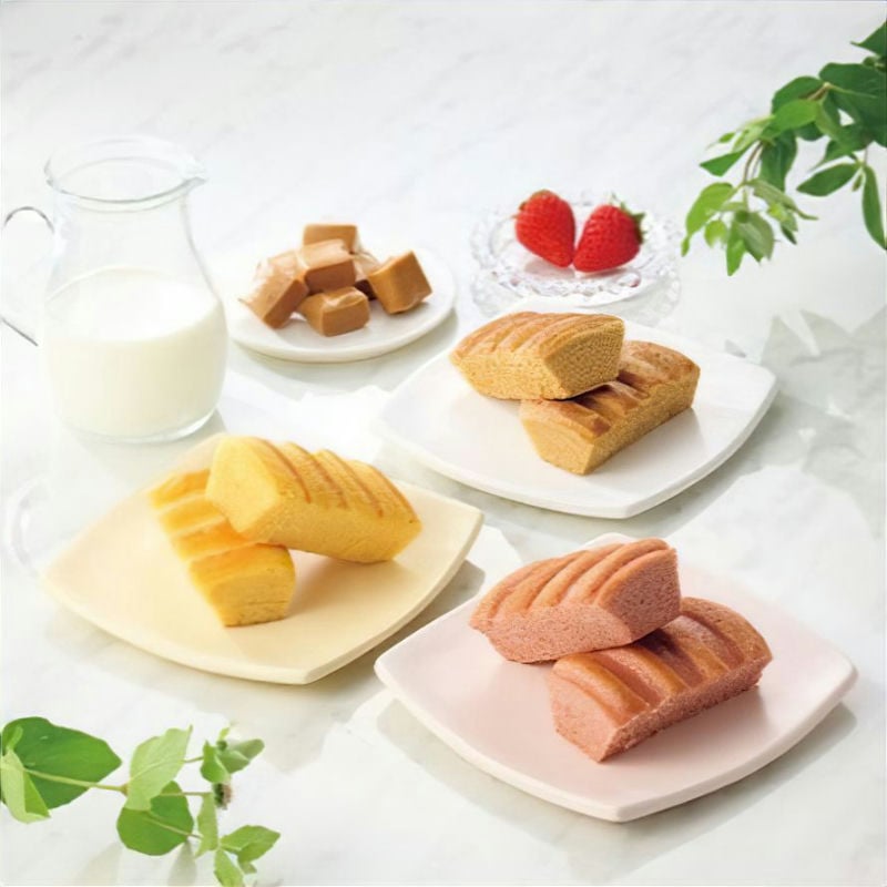 北海道牛乳を使用したしっとり柔らかな口当たりのスティック型バウムクーヘン。ミルク・いちごミルク・キャラメルミルクの3種類の味がお楽しみいただけます。