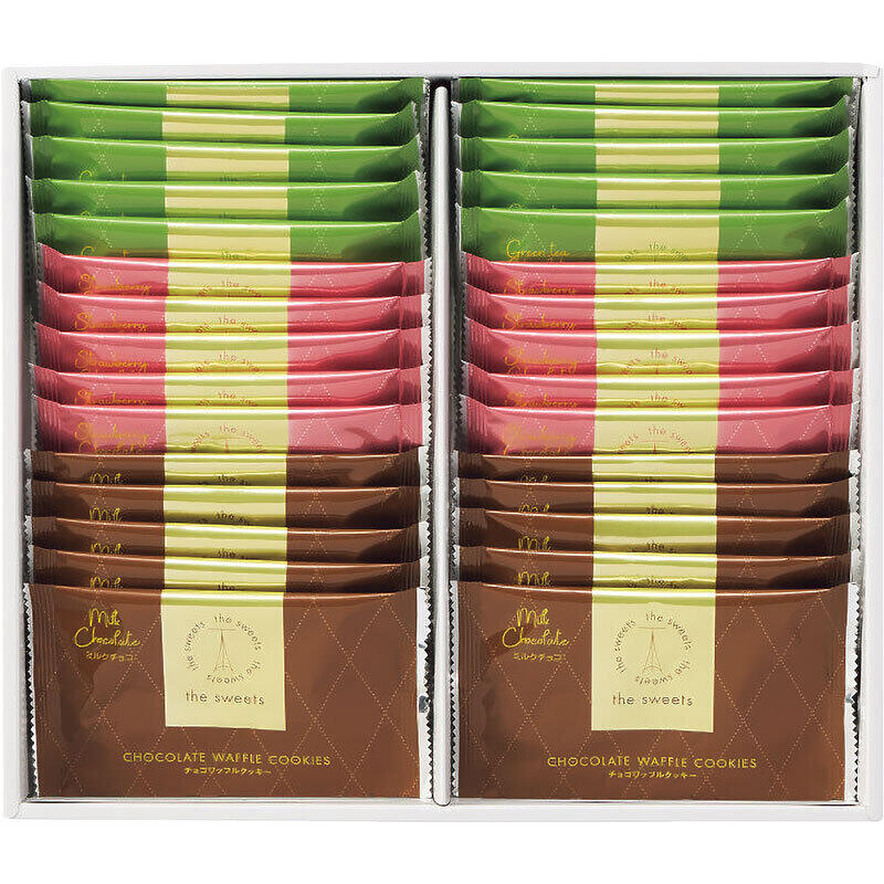 サクッと軽い食感のワッフルクッキーに、3種類のチョコをコーティング。