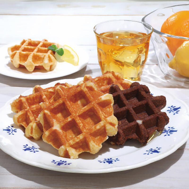 自然な甘さとコクのあるプレーンワッフルと、ベルギーチョコレートを練り込んだ、奥深いカカオの味わいを楽しめるココアワッフルを詰め合わせました。
