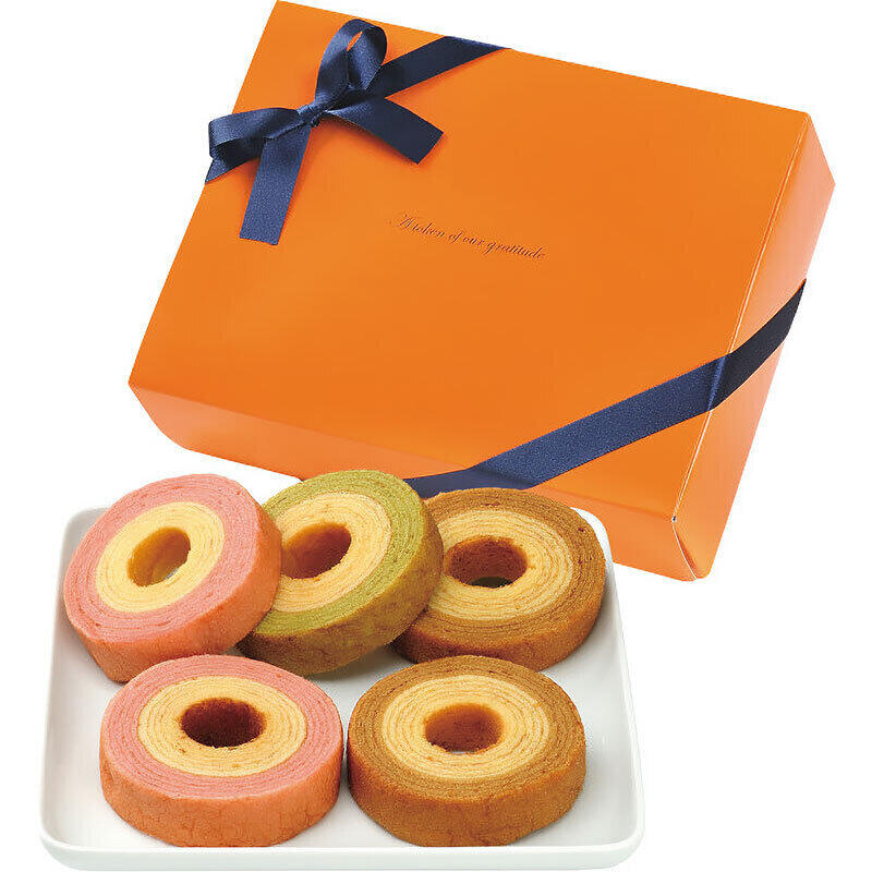 2層バウムクーヘン(キャラメル&ミルク・ストロベリー&ミルク×各2、抹茶&ミルク×1)