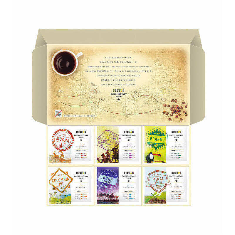 コーヒーの歴史とともに世界を旅するストーリーを表現した、ユニークなドリップコーヒーセット。