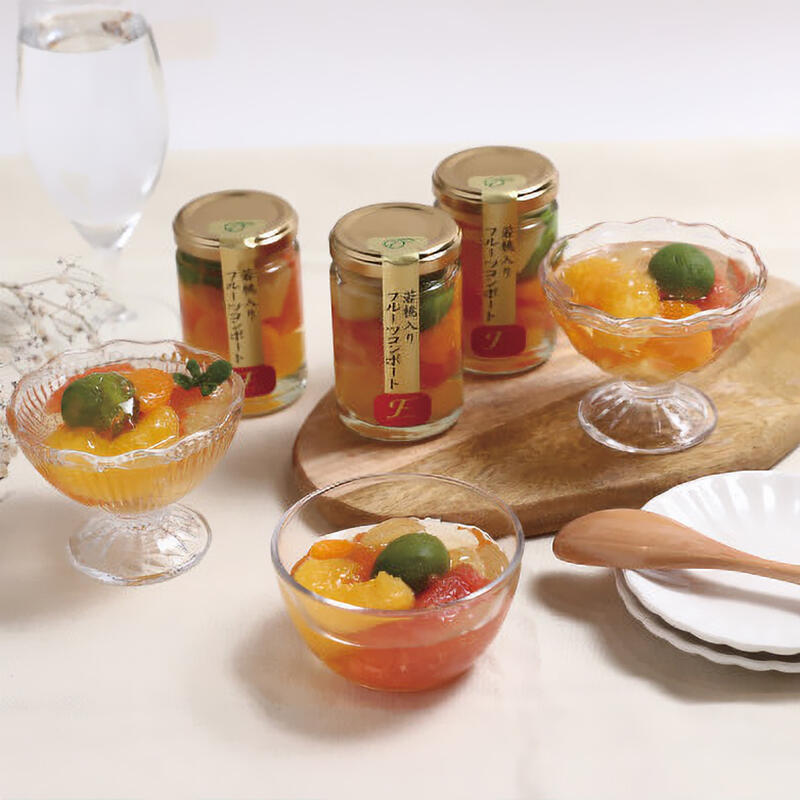和歌山県産のみかんをはじめ、色とりどりのフルーツを詰め込んだフルーツコンポート。