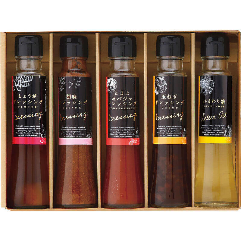 しょうがドレッシング・胡麻ドレッシング・とまと&バジルドレッシング・玉ねぎドレッシング各100ml×各1、ひまわり油90g×1