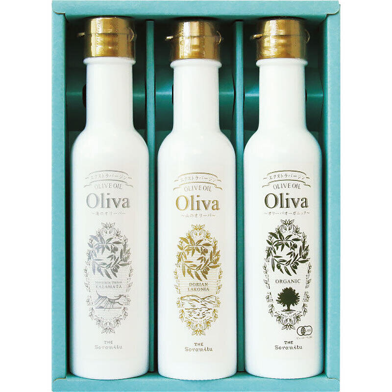 太陽の光をたっぷり浴びて育ったギリシャ産オリーブを使った、3種類のオリーブオイルのセット。抗酸化作用のあるポリフェノールを含み、健康を気遣う方にも喜ばれるギフトです。