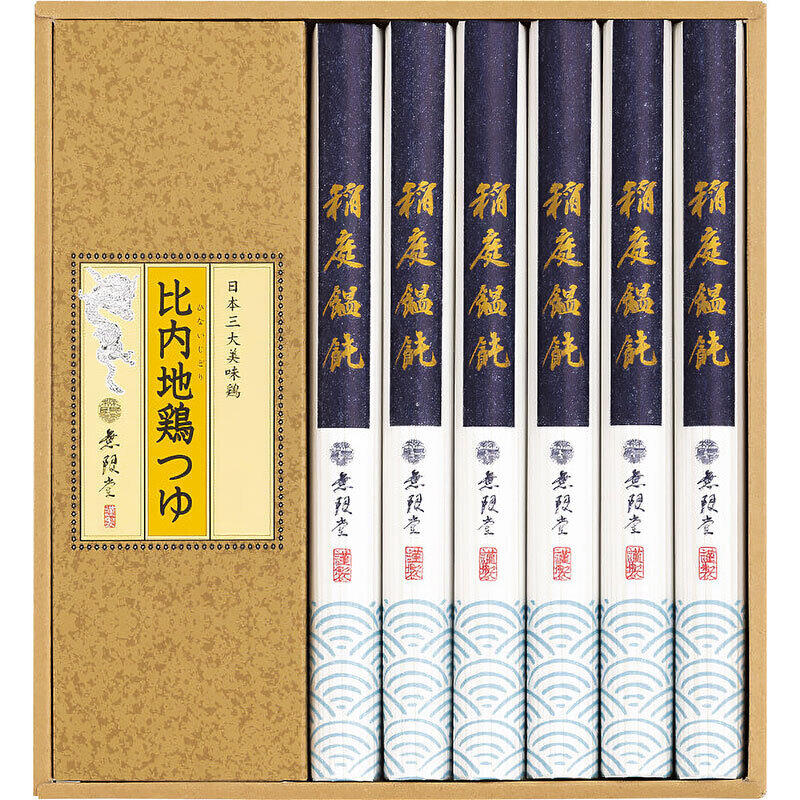 稲庭うどん70g×6、比内地鶏つゆ30ml×6