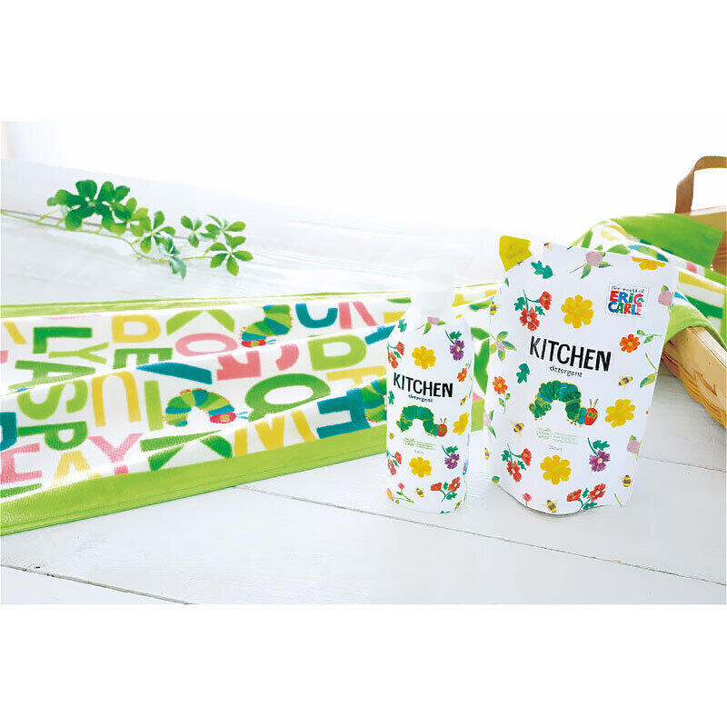 はらぺこあおむしが絵本の世界からあなたのキッチンへ 清潔感あふれるデザインの食器用洗剤のセット。