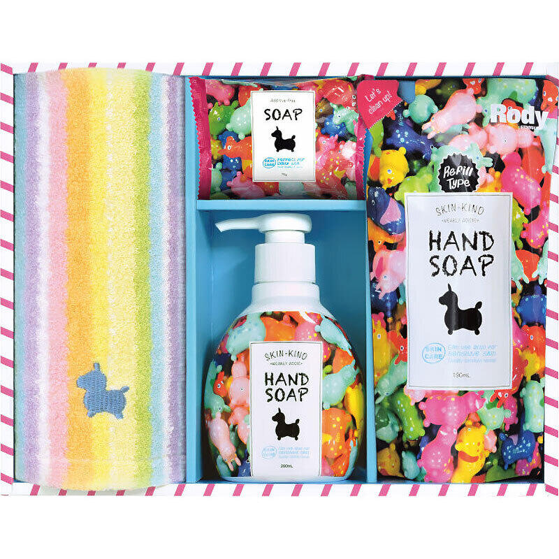 カラフルなロディのパッケージがかわいい、ハンドソープ&タオルのセットです。