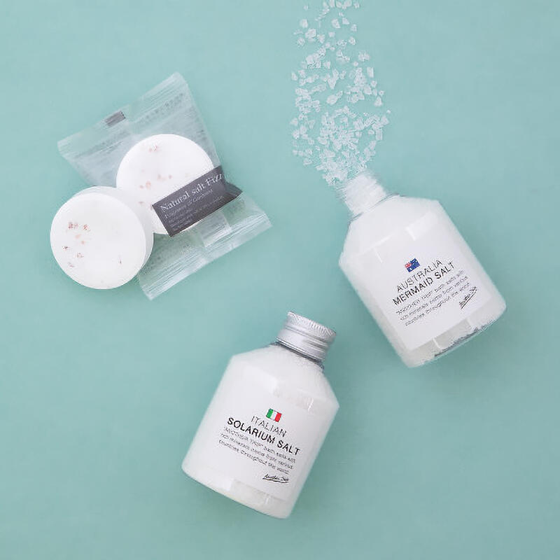 マイクロファイバークロス1枚、ソルト・フィズ40g2個、ソルト入浴料(イタリアン)180g1個