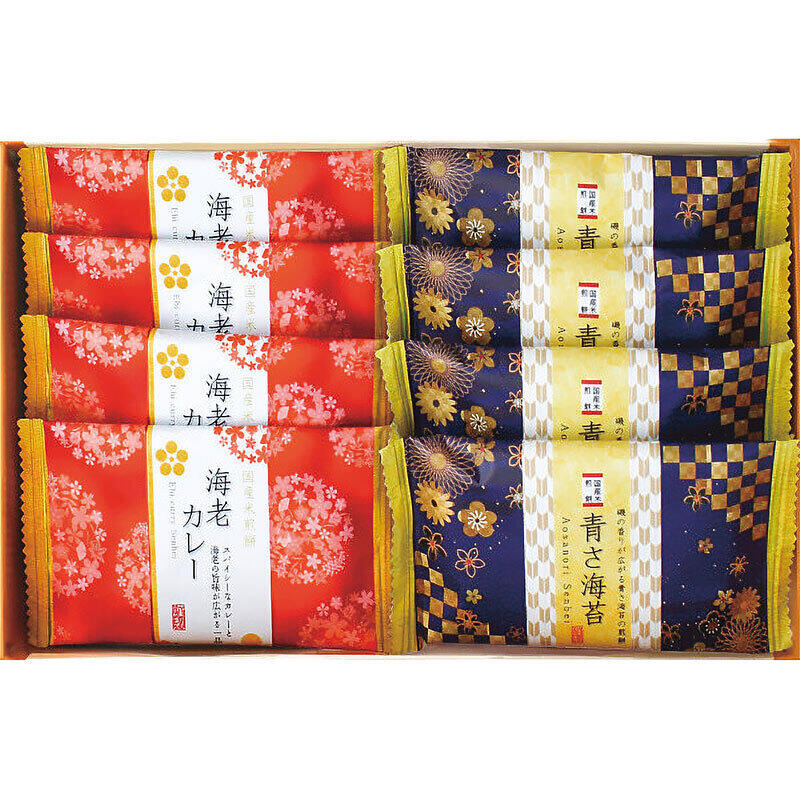 青さ海苔煎餅・海老カレー煎餅×各4