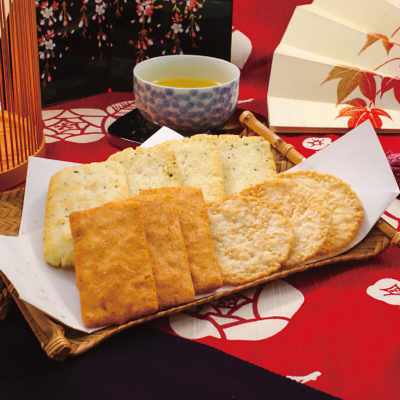 青さ海苔煎餅×6、柚子胡椒煎餅・海老カレー煎餅×各3
