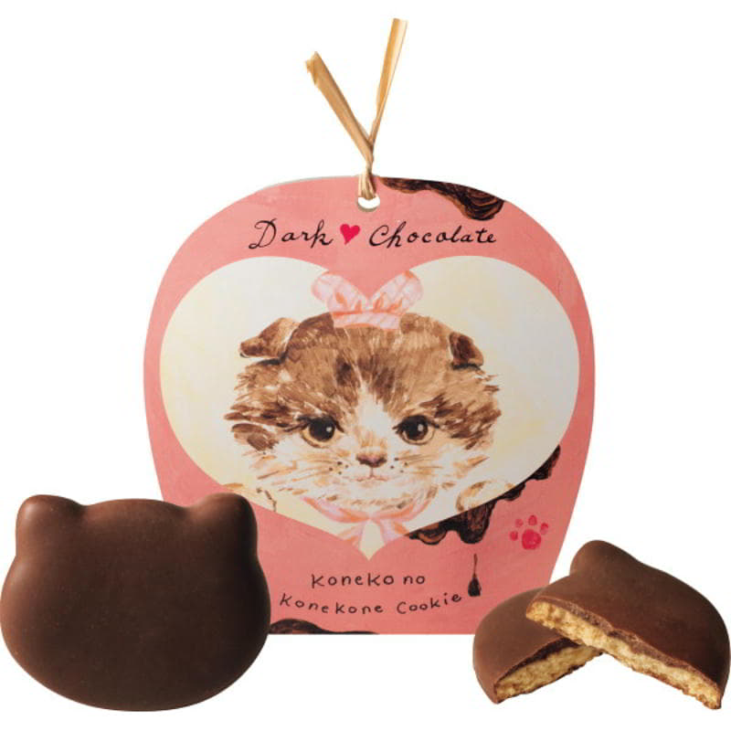 こねこのクッキーに贅沢にチョコレートをコーティング。プチギフトにぴったりのサイズです。猫好きの方への贈り物に。
