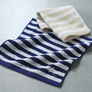 アニエスベーの象徴的なアイテムの一つであるボーダー「b.」ロゴをラメ刺しゅうで施したカジュアルシックなミニタオルのギフトです。