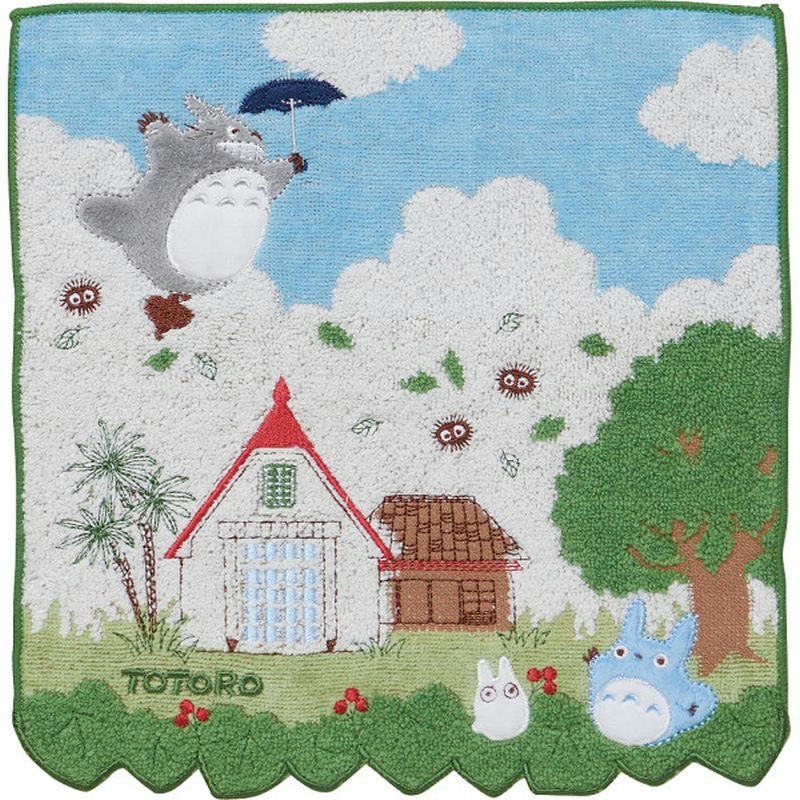 奥行きを感じられるデザインのトトロ柄のミニタオルです。