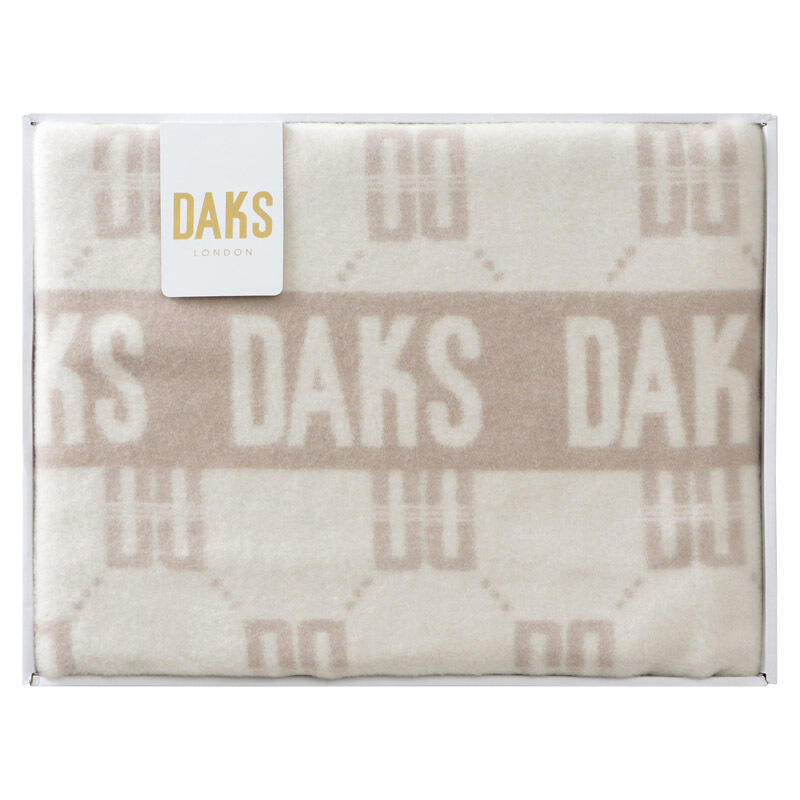 英国王室御用達ブランドとして幅広い世代から支持される「DAKS」のロゴが印象的な、ウール毛布です。